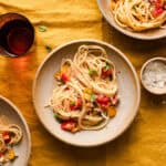 Serve it at room temperature- This dish is meant to be enjoyed at room temperature. The contrast between the warm spaghetti at the room temperature salsa crudaiola is what makes the flavours bloom and stand out. Believe me, you don't want a cold sauce straight from the fridge where you can barely taste the flavour!